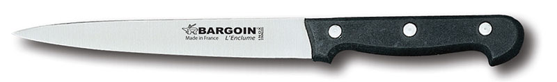 Le manche de ce couteau Bargoin est en ABS, une matière robuste, ergonomique et hygiénique, idéale pour la cuisine. Cette matière retient peu les bactéries et est facile à nettoyer. De plus, ce manche est traversé par 3 rivets qui contribuent grandement à l’équilibre de ce couteau filet de sole.